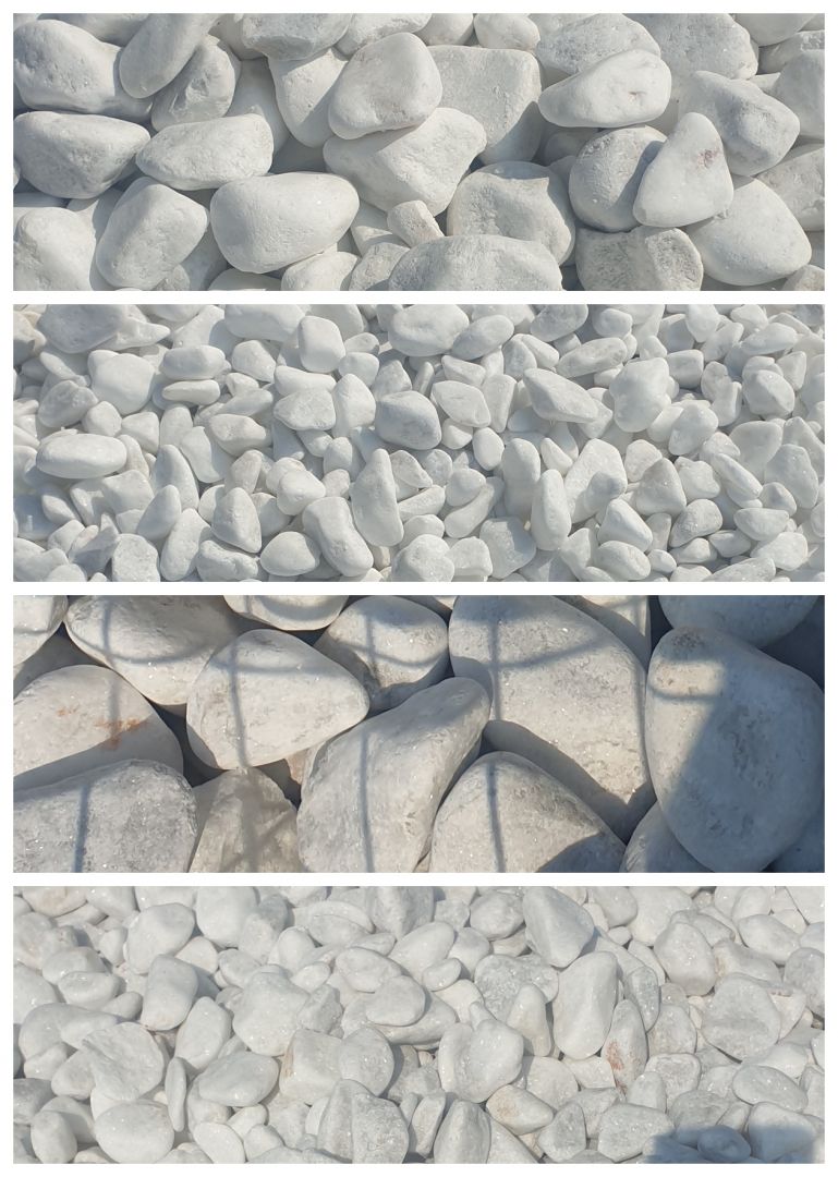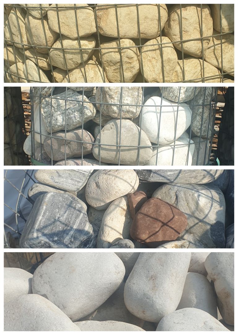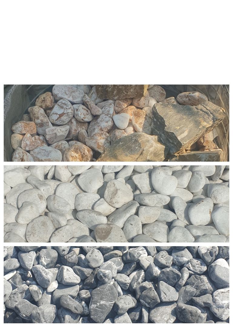 Ayrıca taşlarımız; saksı dipleri için küçük boylardan (1-3 cm), büyük peyzaj alanları için orta (3-5 cm) ve büyük boylara (5-10 cm ve üzeri) kadar geniş bir ölçü skalasında sunulmaktadır.